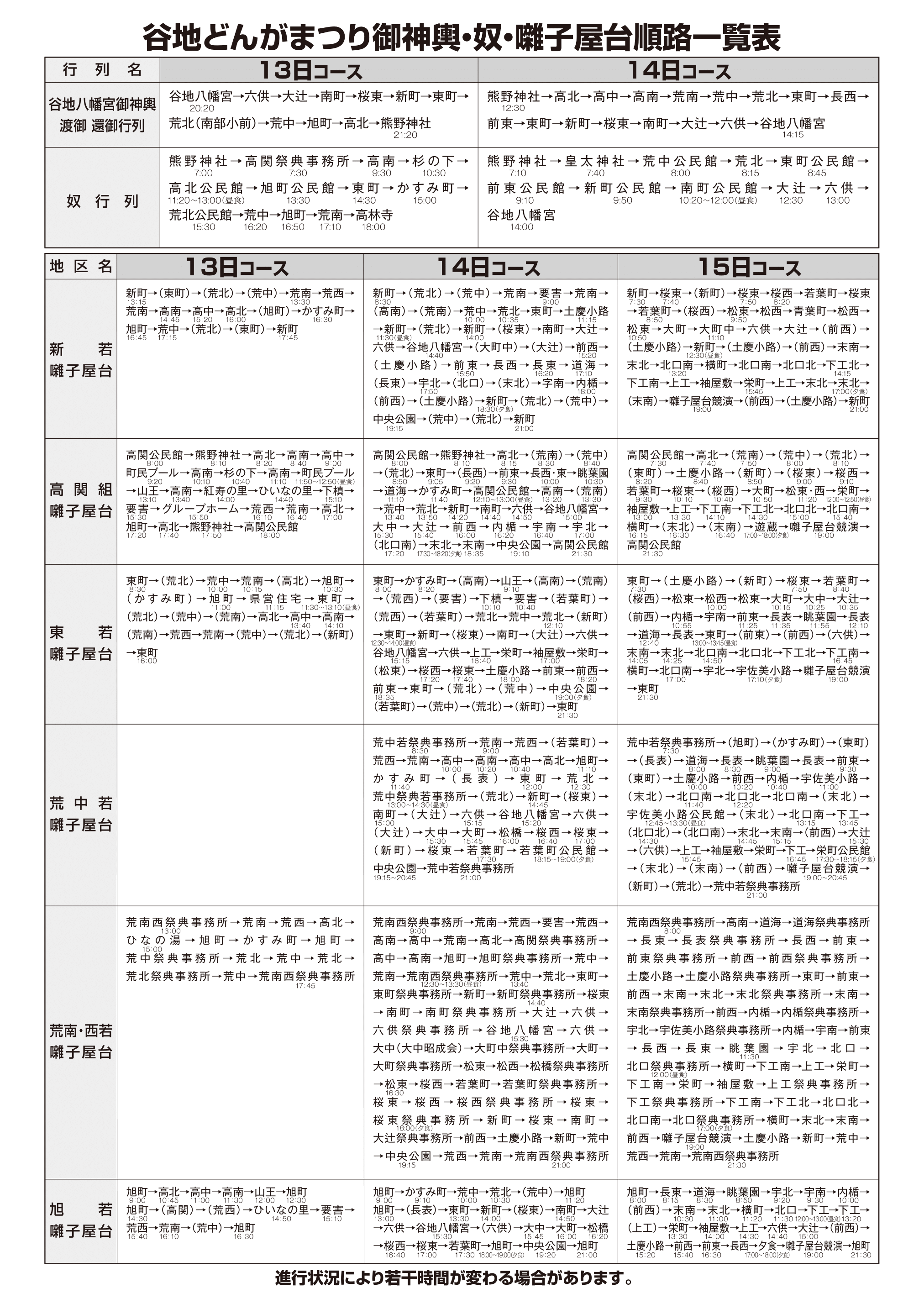 奴・囃子屋台巡演 昼・夜 谷地南部地区