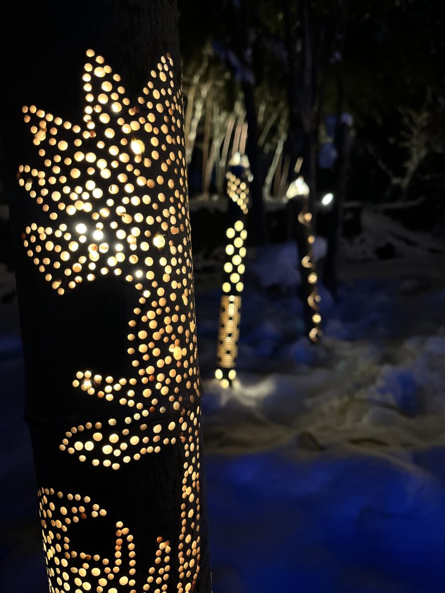 規模こそ小さいですが、一つひとつの光に来館者を喜ばせたいという想いを込めております。竹灯籠から漏れる優しい光で癒されてください。