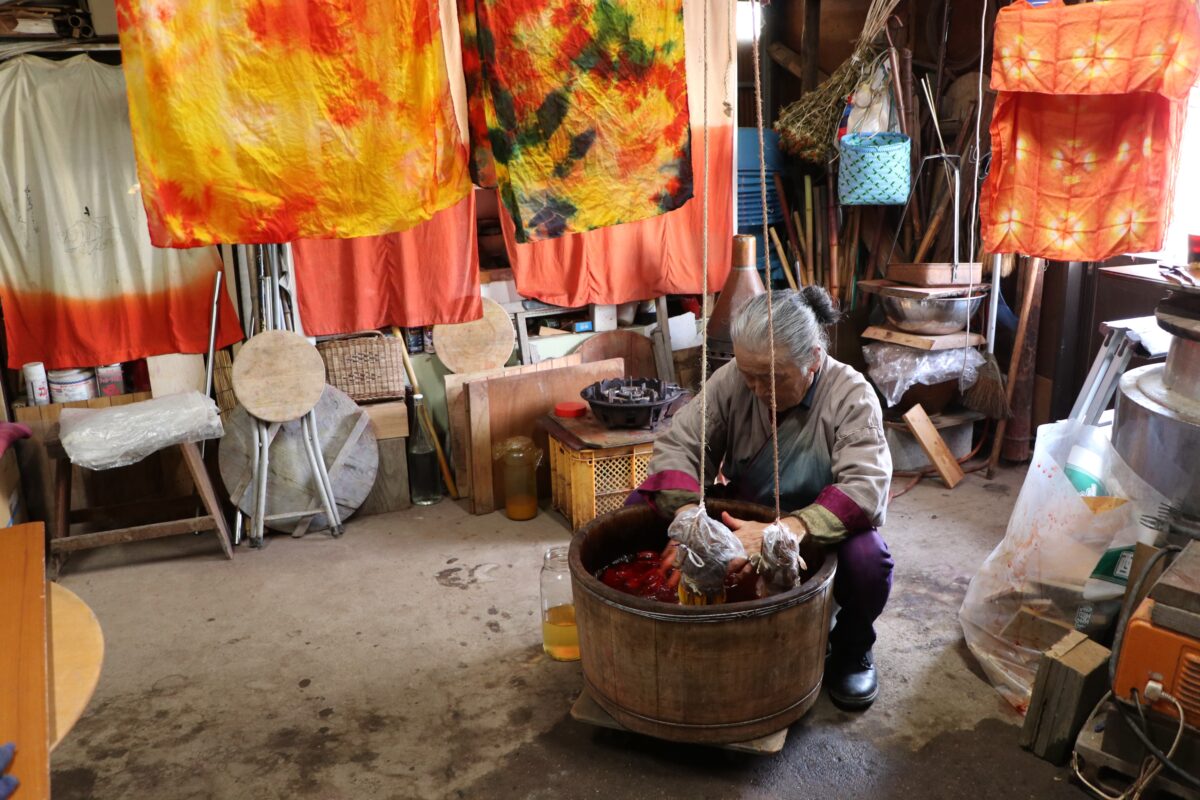 1990年には、厳冬期の冷たい水を使用することで、より鮮やかで濁りのない発色を引き出す「寒染め」の技法を確立。自然の厳しさを味方につけることで、唯一無二の色彩を手に入れたのです。